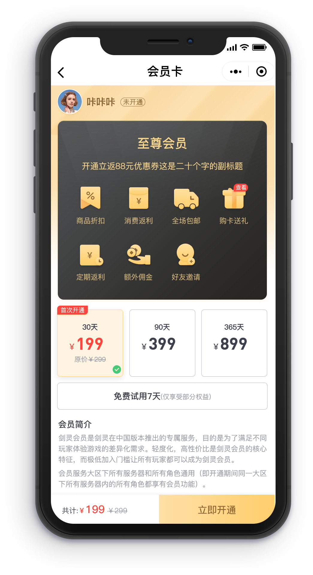 会员折扣、包邮、周期返利、额外佣金等多种权益设置,