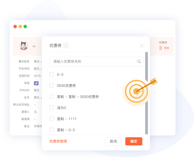 可随时了解会员详情,定向发放优惠券,有效提升成交率。
