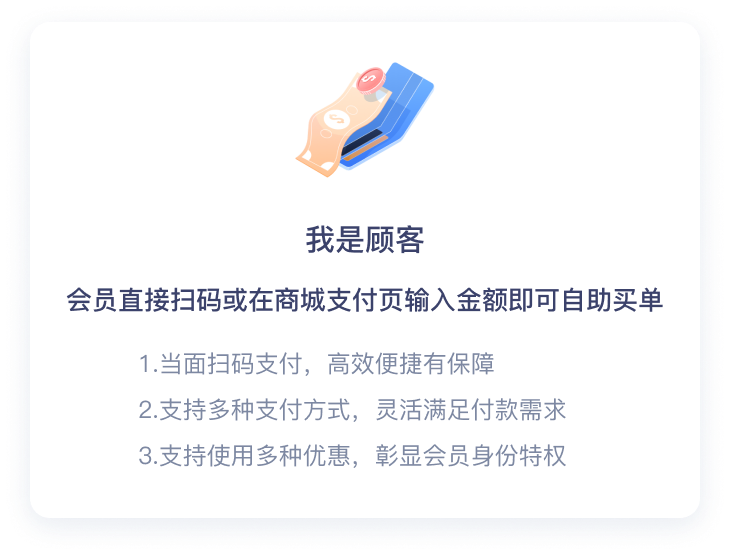 ·固定金额收款码:后台预先设定好一个固定金额,会员付款时无法修改金额 ·通用收款码:会员在扫描收款码后,需自己填写付款金额才能进行支付
