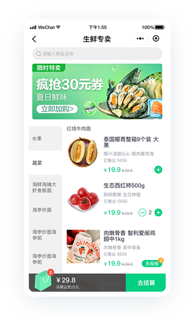 商品快速浏览一键加购下单,节约购物时间