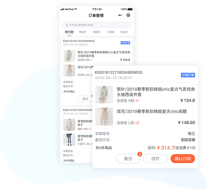 实时查看店铺待付款、待发货、待收货、已完成、已关闭全部状态订单